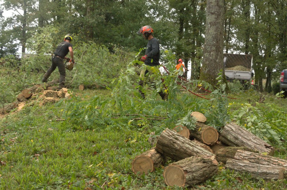 Travaux d'élagage et d'abattage d'acacias sur la commune de Preuilly sur Claise.