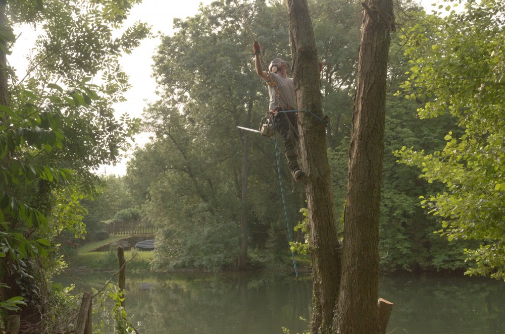 Abattage de plusieurs aulnes morts en bord de Clain au niveau de Poitiers.