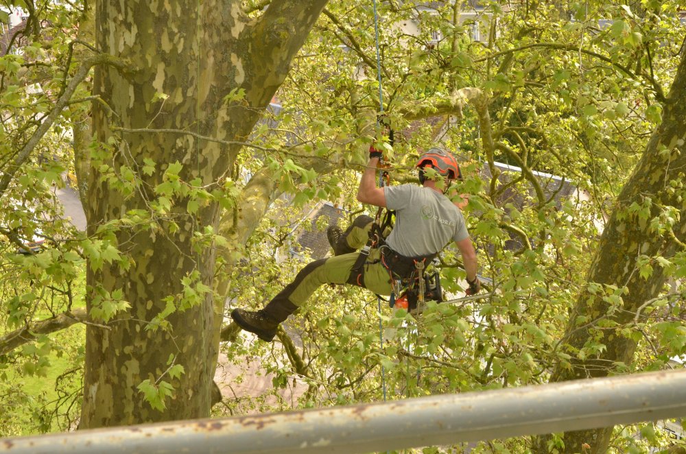 Taille sécuritaire sur de grands platanes pour la commune de ¨Preuilly sur Claise