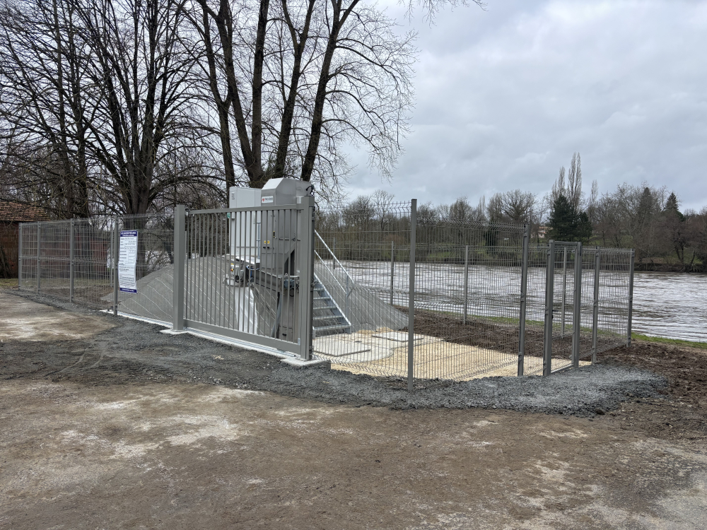 Nouvelle réalisation par nos équipes de Haute-Vienne. Sécurisation d'un site de refoulement par la pose d'une cloture rigide avec portail coulissant et Portillon