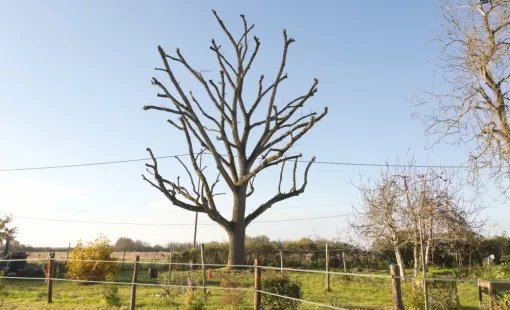 Abattage par démontage d'un noyer commun sec sur pied