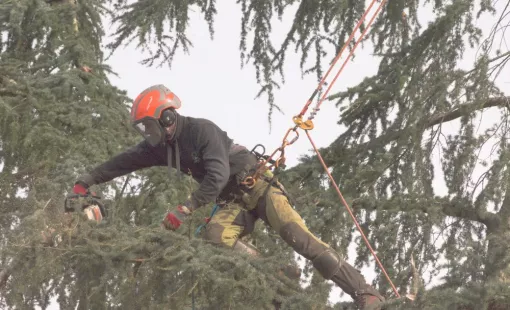 Notre équipe est intervenue sur la commune de Châtellerault pour abattre par démontage un cédre qui a fortement été fragilisé à la suite d'une tempéte.