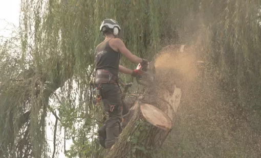 Abattage par démontage d'un saule pleureur entiérement mort sur la commune de Vouneuil sur Vienne