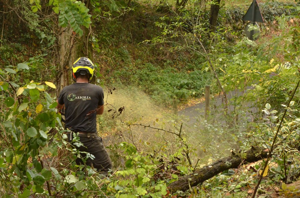 Suppression d'une lisiére d'acacias devenu menacante avance le temps. En effet, les arbres se situaient à proximité de la route mais également de fils éléctriques .