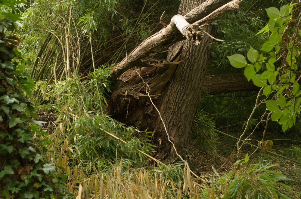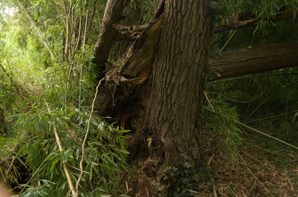 Abattage traditionnel de l'arbre à hauteur, au vu du décollement important au niveau de l'embase