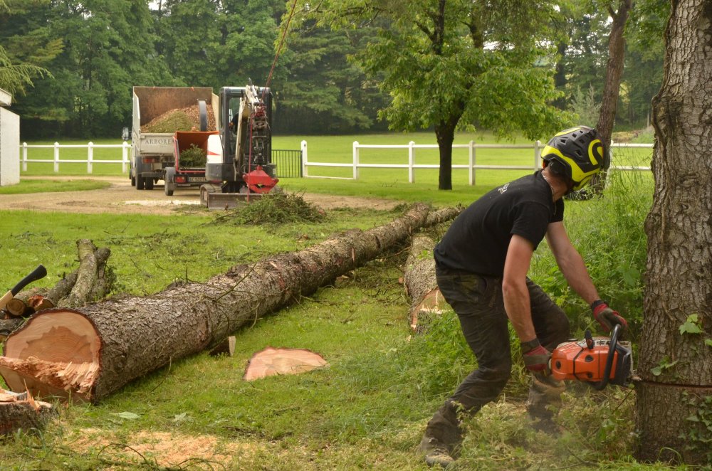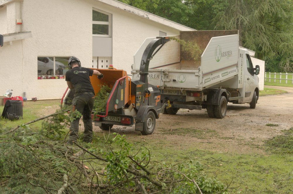 Débitage des bois, stockage à proximité et broyage de branche + évacuation du BRF