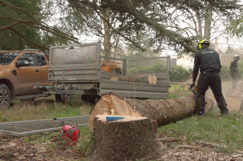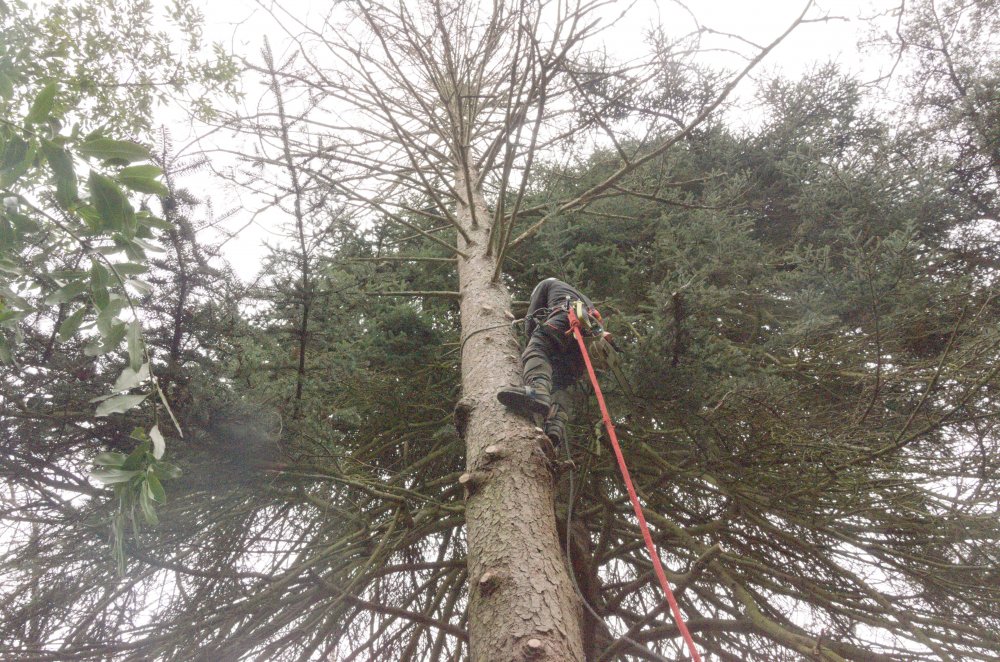 Abattage traditionnel d'un épicéa mort à Civaux à Châtellerault : Arborea vous présente ses dernières photos.