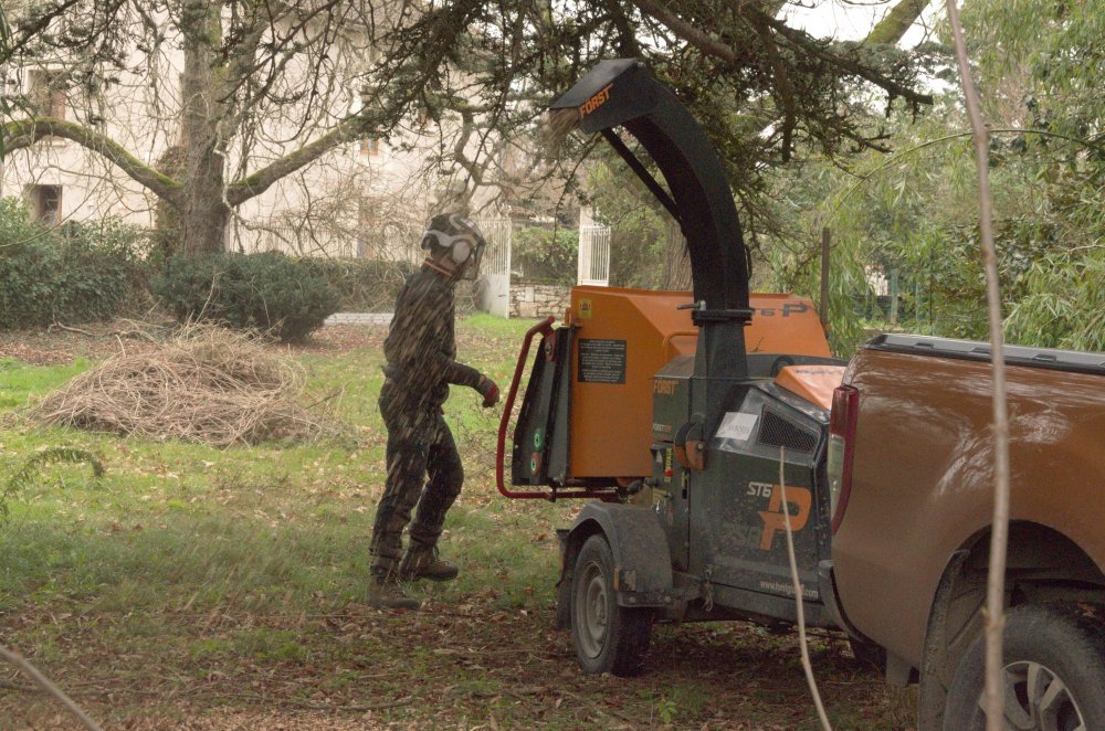 Par la suite, nous avons broyer l'ensemble des branches et débité le bois en 50cm.