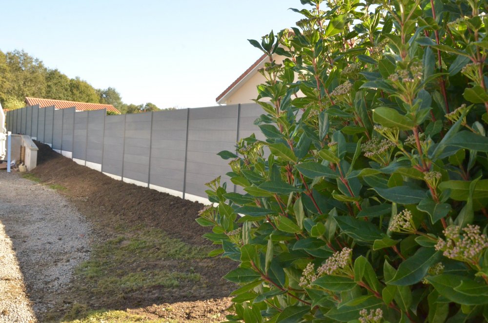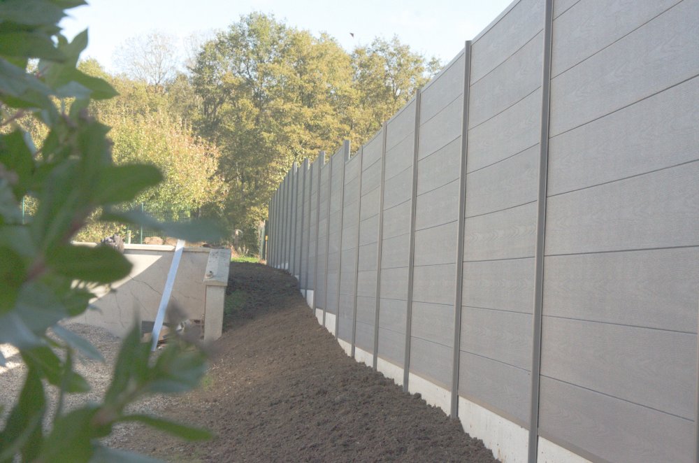 Une cinquantaine de métres de cloture en lames composite et poteau aluminium sur la commune de Rochechouart, dans le Limousin.