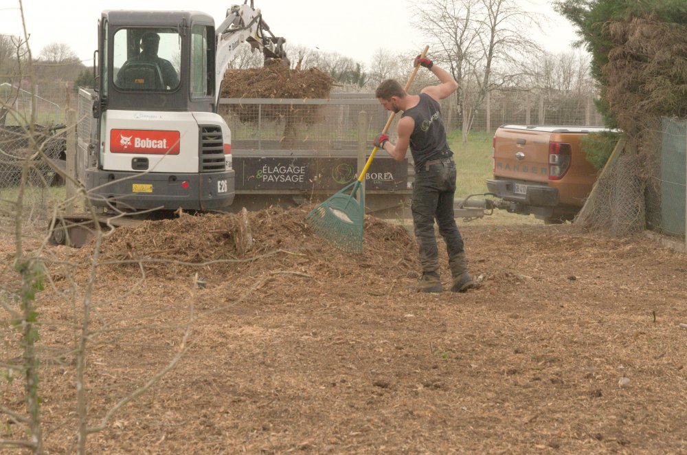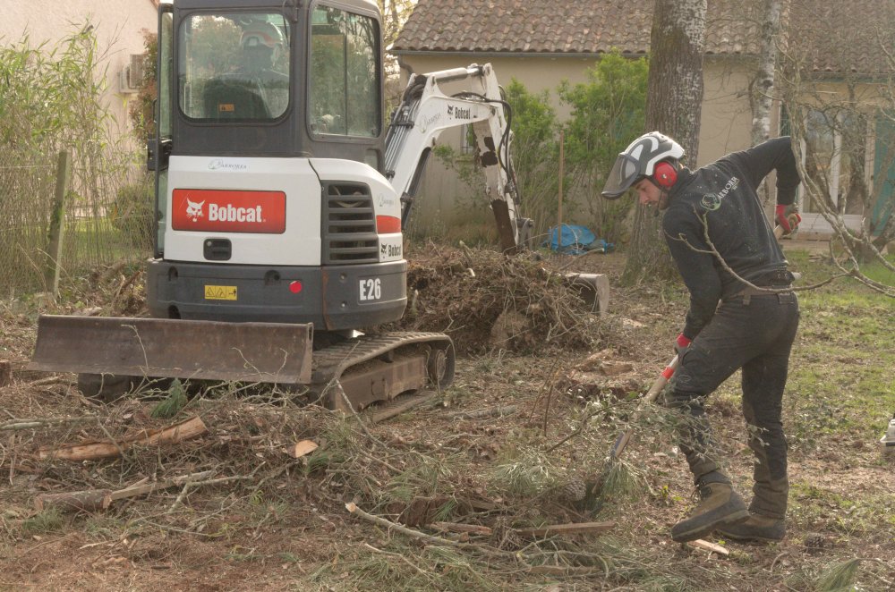 Nos équipes ont procédé à l'enlévement de la végétation puis, à l'aide d'un bob cat équipé d'une tête rogneuse, à l'enlévement des souches par technique de rognage.